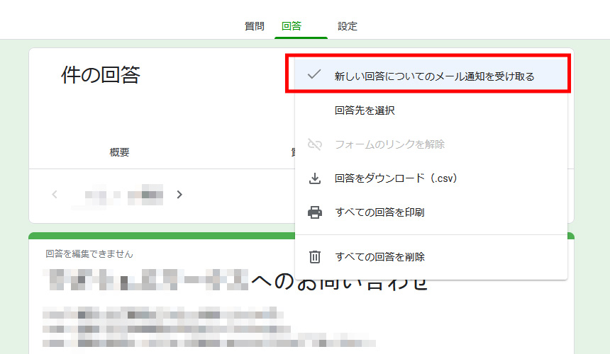 Google Googleフォームのお問い合わせがあったら通知が来る設定