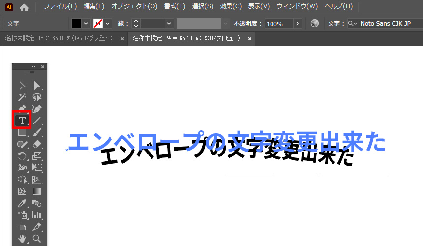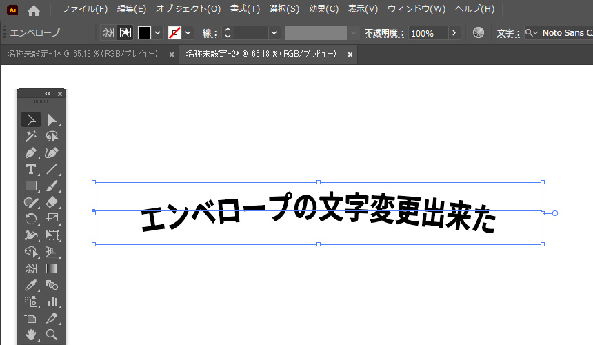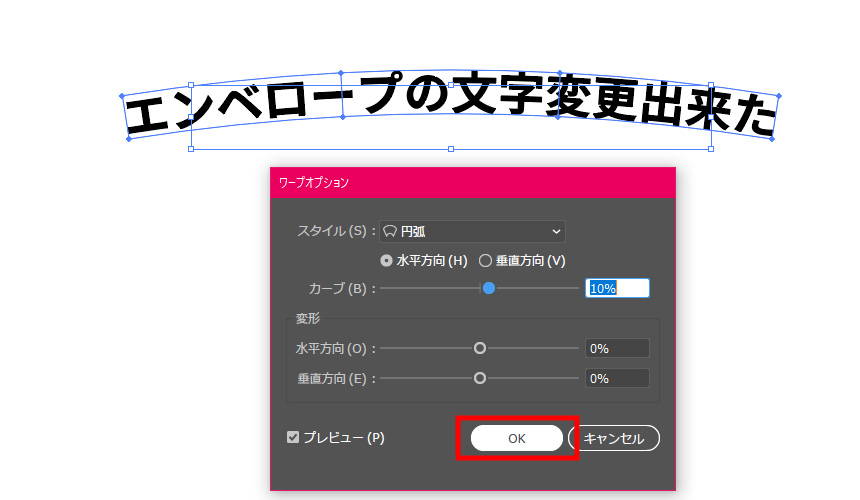 「オブジェクト」→「エンベロープ」→「ワープの設定」をクリック