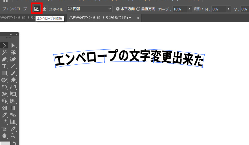 並んでいる2つのボタン「エンベロープの編集」と「オブジェクトを編集」で切り替えることができます。