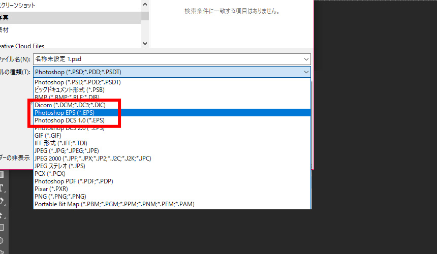 突然消えた「Photoshop eps」