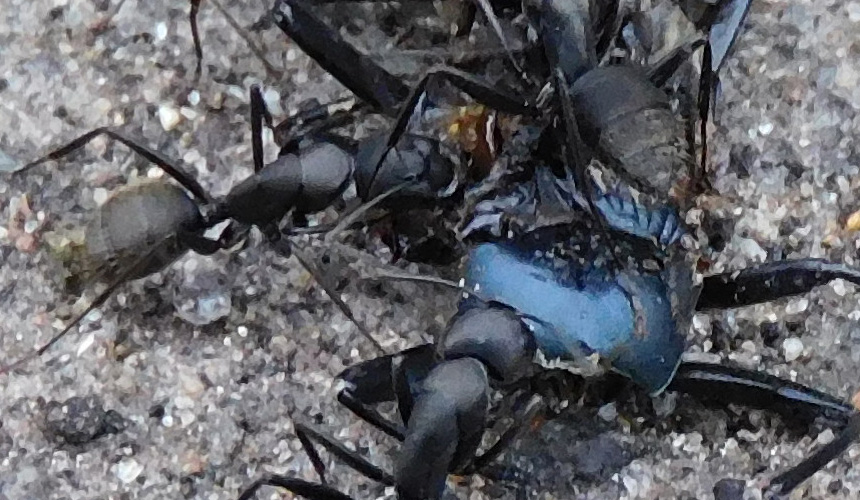 大きな顎は、アップでみるとかなりの迫力だ。クロオオアリはこのような太い顎だが、サムライアリは細長い顎だそう。アリの顎にも種類があるようなので他のアリも観察してみたい