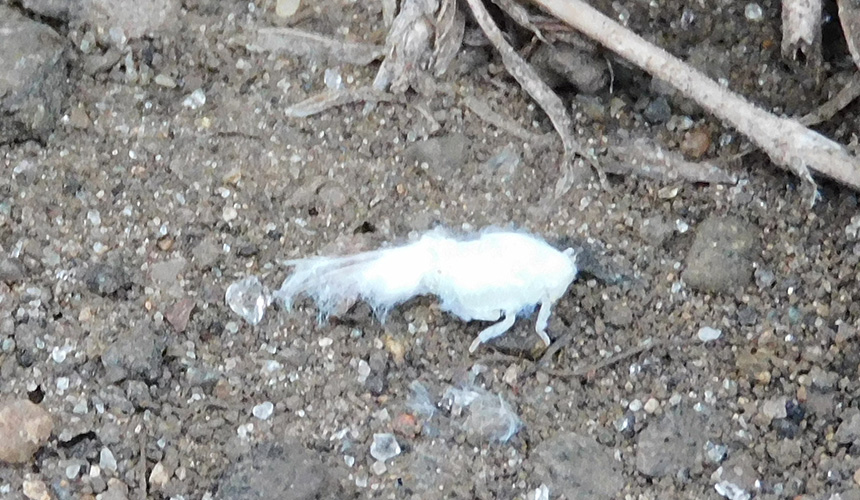 撮影中も幼虫からどんどん綿が飛んでいっていた。