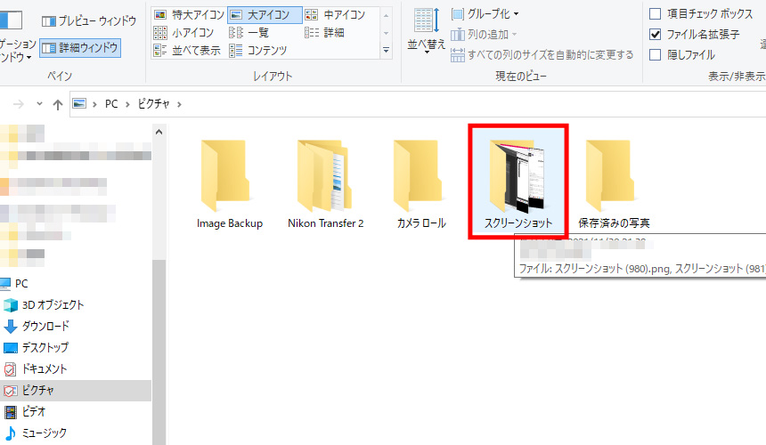 スクリーンショットの保存先フォルダはこちら